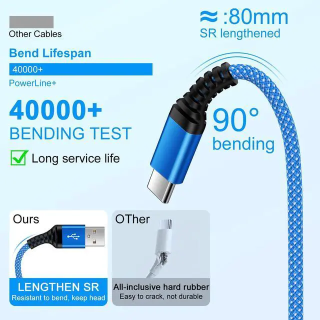 The iphone 16 power cord is made of premium fabric jacket design, 40000+ cycles bendings,tangle-free,sturdy,durable & flexible.
