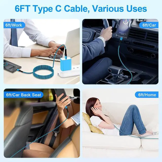 6 foot extra long usb type c cable fast charging made you charging wherever you want.