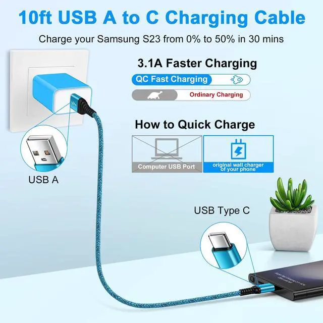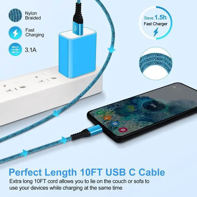 10 foot extra long usb type c cable fast charging made you charging wherever you want.