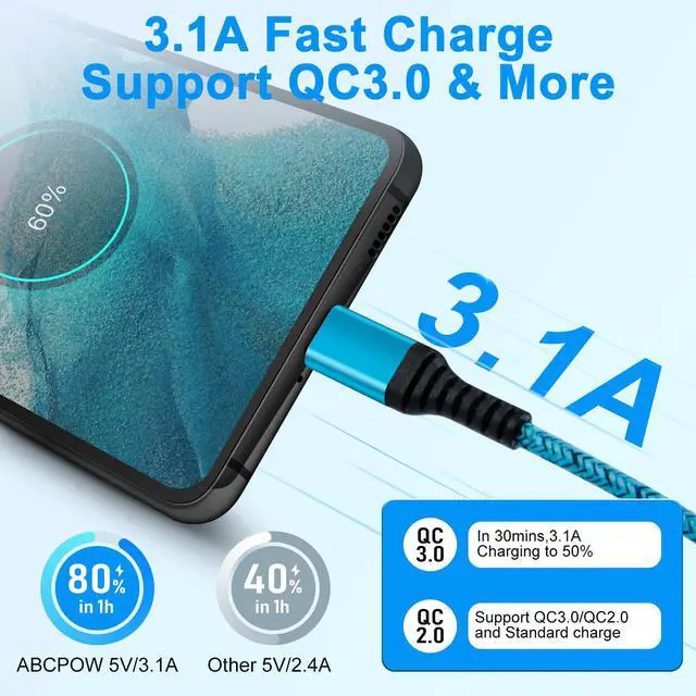 The usb type c android cable are suitable to support QC 2.0/3.0 fast charger block.