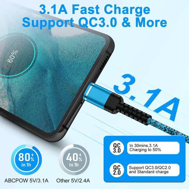 The usb type c android cable are suitable to support QC 2.0/3.0 fast charger block.