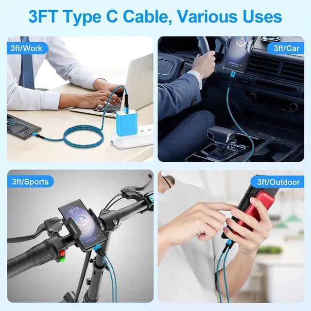 3 foot short car charger cord usb type c cable fast charging make your space tidy and organize.