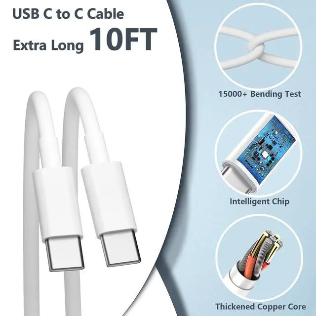 2025 20W USBC Fast Charger Adapter for iPhone 17 16 15 with 10 Feet USB C to C High Quality Charging Cable