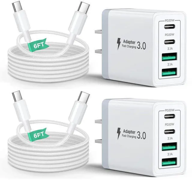 40W USB C Charger Block, 2Pack 4-Ports Type C Fast Phone Charging Cube with 6FT USBC to USBC Cord, Multiport Wall Plug Power Brick Box Compatible with iPhone, Samsung, iPad Pro, Cellphones Charger