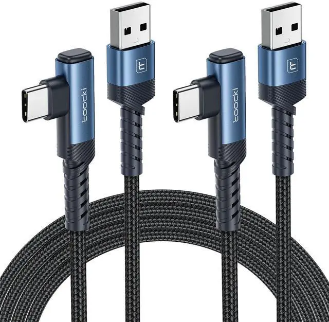 USB C Cable Right Angle, 2-Pack USB A to USB C Charger Cable 90 Degree Braided Fast Charging Cord
