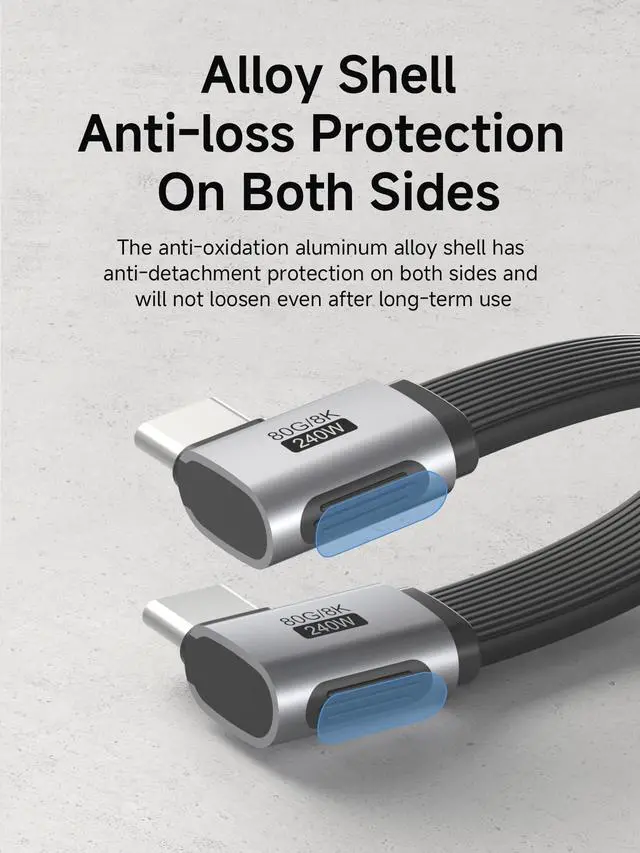 240W Fast Charging: Built-in E-marker chip, PD 3.1 standard supports 240W fast charging, while it is backward compatible with PD3.0 and 2.0 protocols,Supports high power output of up to 48V5A. And also compatible with 140/100/60W power devices. Charge USB C devices from phones to laptops