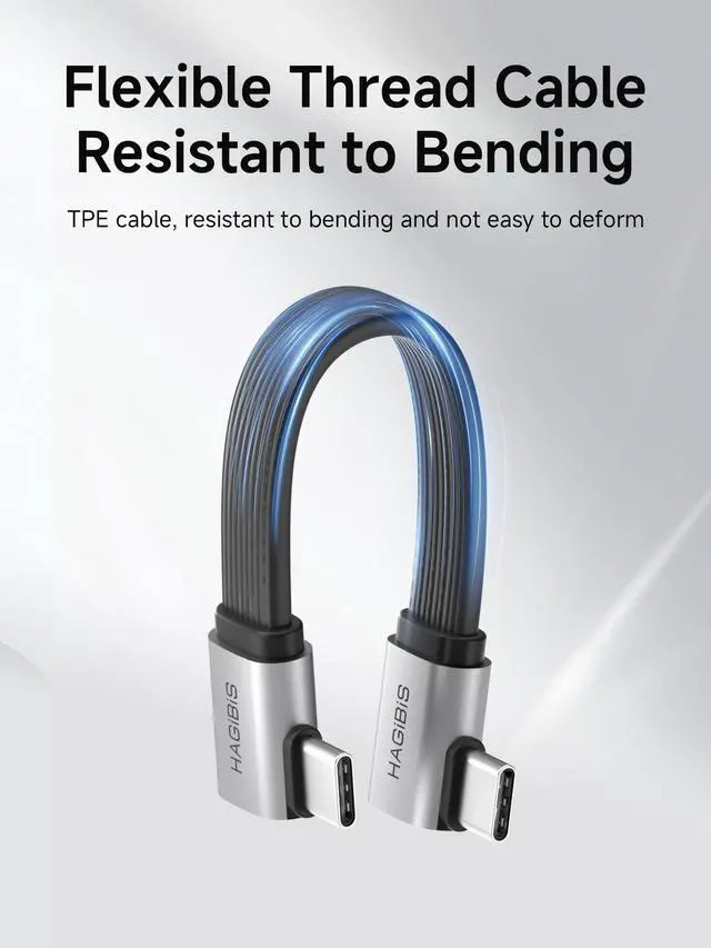 Unique Structural: Hagibis L-type 90 Degree short USB C to USB C cable has been upgraded to a copper core flexible flat cable, which is more durable than FPC flexible circuit boards and can be bent freely without breaking