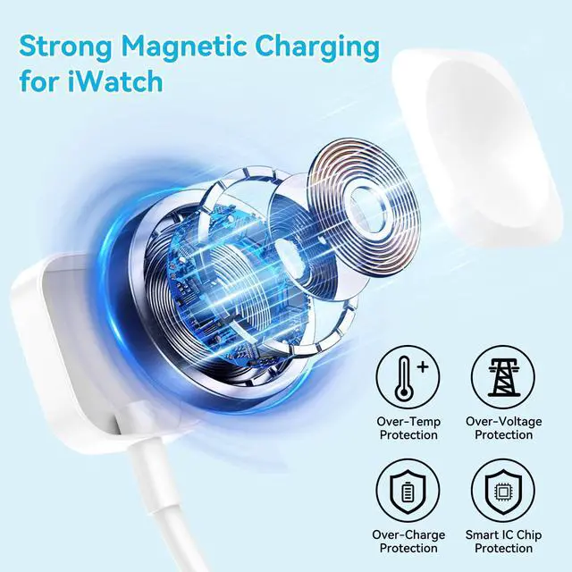 Strong Magnetic iWatch ChargerEquipped with automatic chip recognition, our multi charging cable is compatible with the latest iOS system of your watch, always providing good charging for your watch. Built-in magnet charging module, over-current, over-voltage and over-temperature protection provide a safe charging environment for your watch. High-purity copper wire and thickened copper cores ensure long-lasting fast Charging performance.