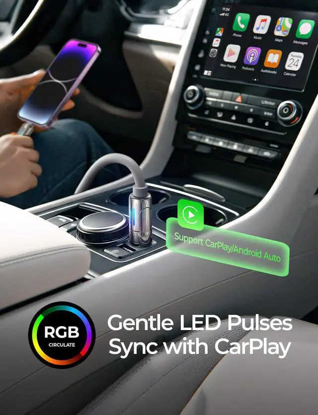 [4-in-1 Charging Cable for All Devices] This Car Carplay Cable features four connectorsUSB-C to USB-C, USB-C to L, USB-A to USB-C, and USB-A to Ldelivering a complete solution for C to C fast charging and data transfer. It allows you to effortlessly power and sync a wide range of devices, including the latest iPhone 16/15/14, iPads, Samsung Galaxy smartphones, MacBooks, tablets, and more. One cable is all you need for travel or business trips.