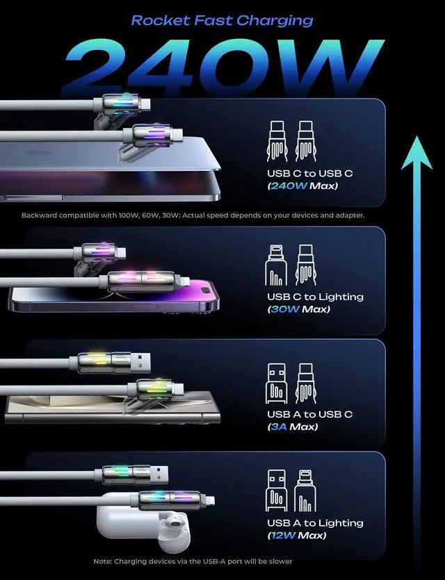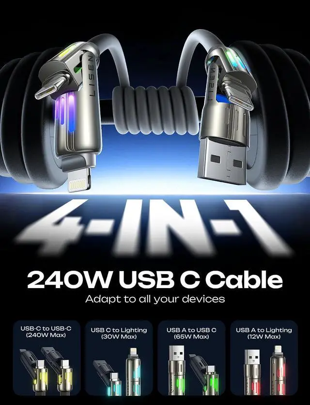 High Speed, Data Transfer, 4 in 1 Charging Cable, Fast Charging