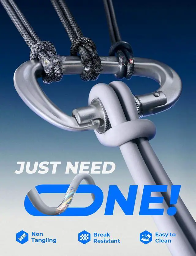 [So Strong Heavy-Duty Thickened Silicone] The heavy-duty USB-C cable boasts an impressive 50,000+ bend lifespan! Made from food-grade, skin-friendly silicone with a baby-soft touch, its tangle-free, waterproof, and easy to clean. The sturdy zinc alloy housing is 1000 times stronger than plastic, ensuring consistent and reliable charging every time. The stylish leather strap keeps storage neat and organized, offering ultimate convenience.