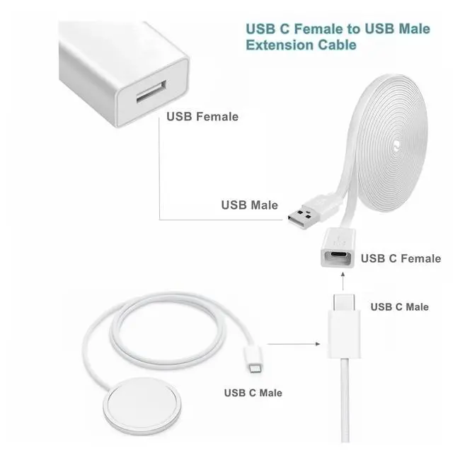 A Versatile USB-C Extension Cable for Various Scenarios Experience the freedom of daily life with our 10-foot USB-C extension cable. Say goodbye to the troubles caused by short cables and flexibly place your devices wherever you need them. Equipped with this USB A male to USB-C female extension cable, you can conveniently position your camera anywhere it's needed. The flat cable can easily pass through small gaps, eliminating the need for drilling. Whether you're in the back seat of a car or at home, this extension cable ensures you'll never run out of charging length. It effortlessly meets all your travel needs, keeping your devices powered up with ease