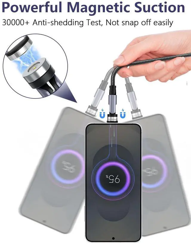 [Interface Dust-Proof]: USB C magnetic charging cable has strong magnetic force to avoid shaking and disconnection. Inserting the magnetic head into the charging port of the mobile phone can prevent dust from adhering and reduce wear and tear when inserting or unplugging the charging cable, thereby reducing damage to the mobile phone.