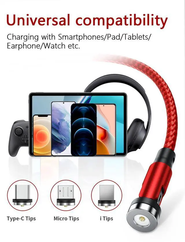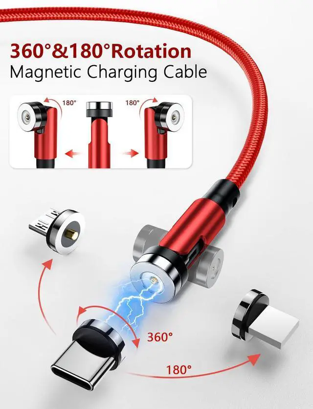 [540°Rotation Design]: Our magnetic charging cable can rotate 540°, magnet tip to rotate 360° and charging head to bend 180° and the rotating design allows you to have a suitable angle in different charging situations,automatically adsorbing precise magnetic connection, super convenient.