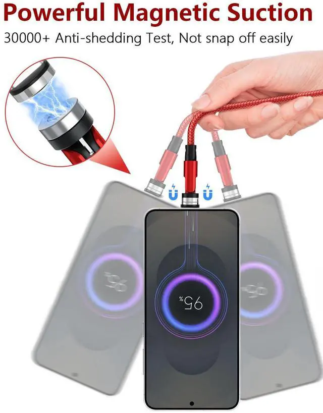 540° Rotation Magnetic Charging Cable,Magnetic Phone Charger with LED [5Pack, 1.6ft/3.3ft/6.6ft/10ft/10ft] 3 in 1 Magnet Charger for Micro USB/Type C etc Nylon Braided USB Cable Red