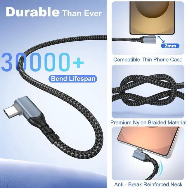 Unique 90 degree L design connector is more convenient to use when charging, like playing games, watching videos or reading.