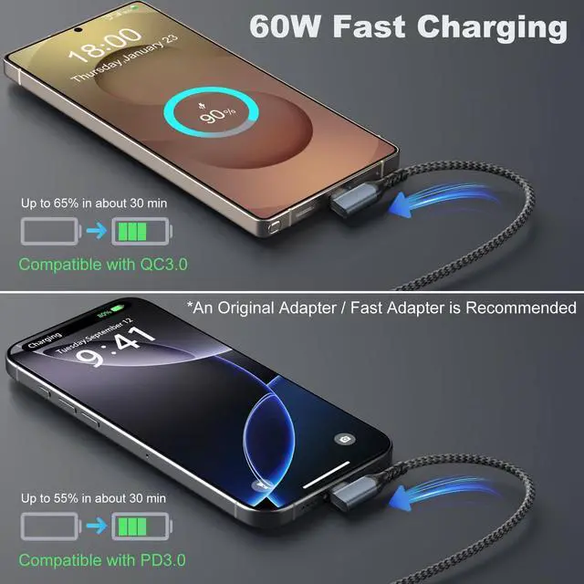 Designed with premium copper, thick gauge wiring and durable braided jacket to ensure safe use, also stands up to a long-time usage effectively.