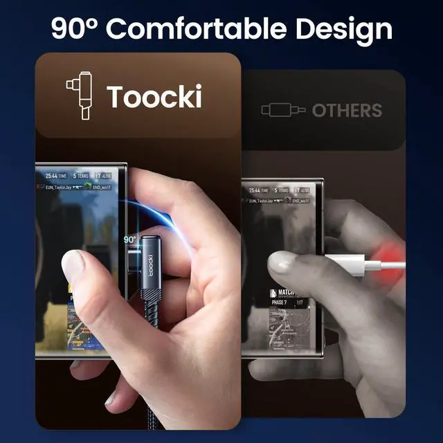 3A Fast Chargingtoocki USB C Cable Right Angle support 5V 3A, 9V 2A or 12V 1.5A fast charge, and QC3.0 AFC FCP Protocol, providing with a transfer speed of up to 480Mbps.(USB2.0)