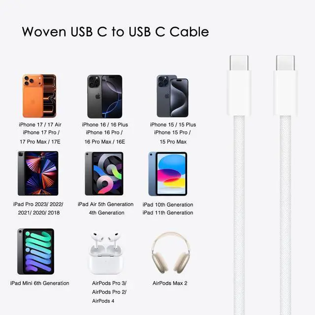 This 1.5-meter cable supports Phones, IPads and AirPods headsets with USB C port.