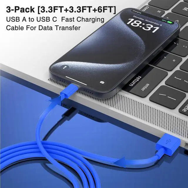 ![Alt view image 5 of 7 - 3-Pack Blue [3.3FT+3.3FT+6FT] USB A to USB C CableUSB to USB C Car Carplay Cable for iPhone 16 15 Pro Plus Pro Maxfor iPad Pro/Air/Minifor Samsung S24/S23/S22for MacBook Pro/Air and More](https://c1.neweggimages.com/productimage/nb640/C691D26040903FREPD9.jpg)