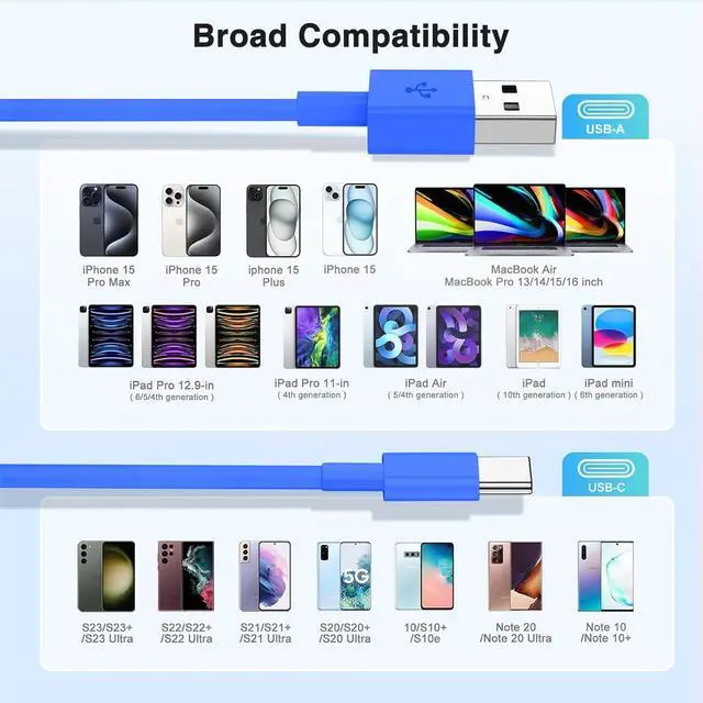 ![Main image of 3-Pack Blue [3.3FT+3.3FT+6FT] USB A to USB C CableUSB to USB C Car Carplay Cable for iPhone 16 15 Pro Plus Pro Maxfor iPad Pro/Air/Minifor Samsung S24/S23/S22for MacBook Pro/Air and More](https://c1.neweggimages.com/productimage/nb640/C691D26040903FOZD78.jpg)
