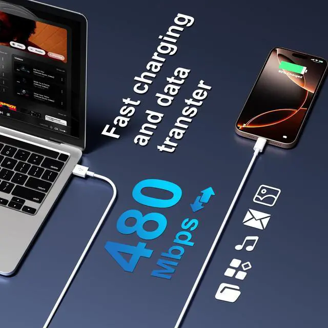 Speed The USB-C cable will provide optimal voltage and stable current for youriPhone/iPad also a fast trasfering iPhone data cable up to 480Mbps(30MB/S).