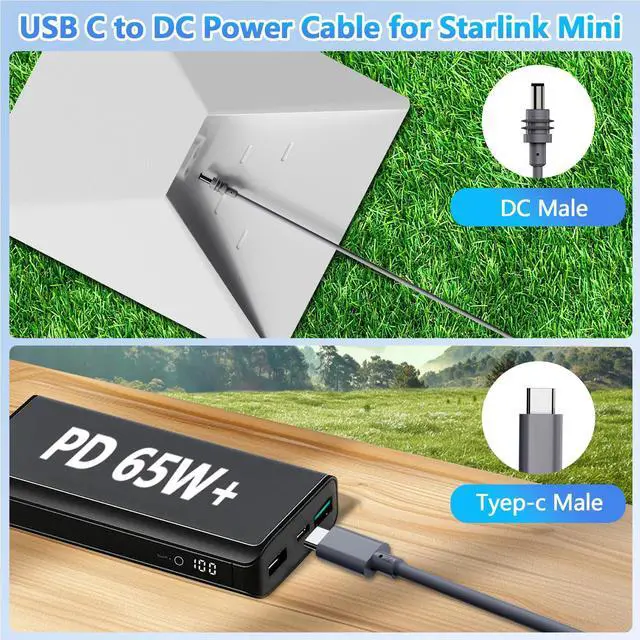 PD Compatible Power Bank: Use the for Starlink Mini cable with PD-compatible power banks to directly provide stable power for your Starlink Mini dish antenna. For the best performance and long-term reliability, choose a power bank with at least 65 watts of output power, and the power bank must support the PD (Power Delivery) protocol.