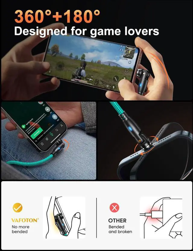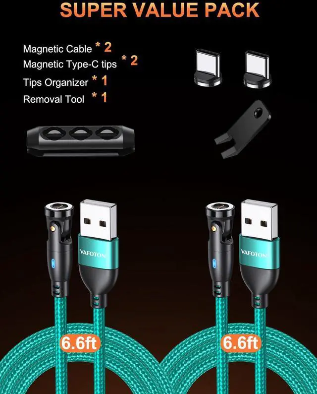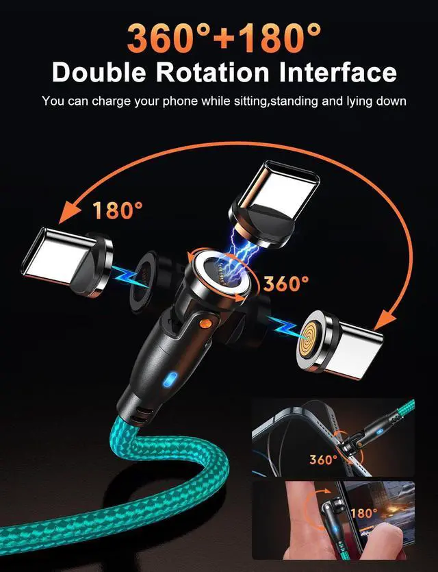 VAFOTON 360° Degree Magnetic Charging Cable/180° Degree Magnetic Charger Cable