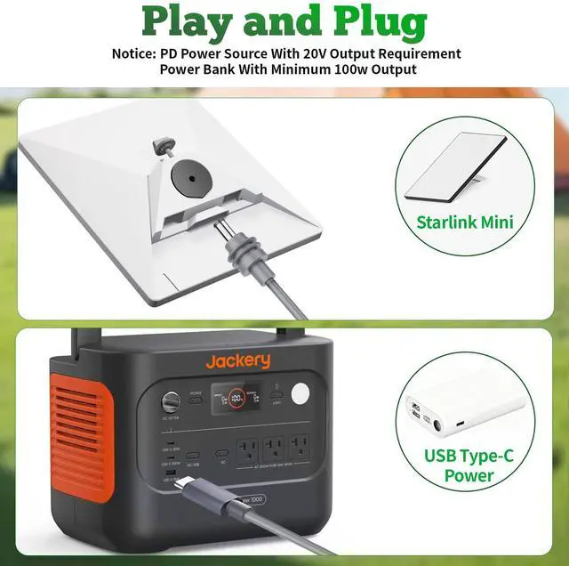 High-Efficiency 100W Fast Charging Engineered with 20V/5A output, this USB C to DC cable delivers stable power to your Starlink Mini, eliminating low-battery anxiety during outdoor adventures or RV trips. Durability for Harsh Conditions The heavy-duty waterproof cable features 18AWG oxygen-free copper wires and a reinforced jacket, surviving extreme temperatures (-20°C to 60°C) and rough handlingunlike flimsy third-party cords. Smarter Compatibility, Fewer Adapters With PD 3.0 support, it seamlessly connects to solar generators and 100W+ power banksno extra converters needed.
