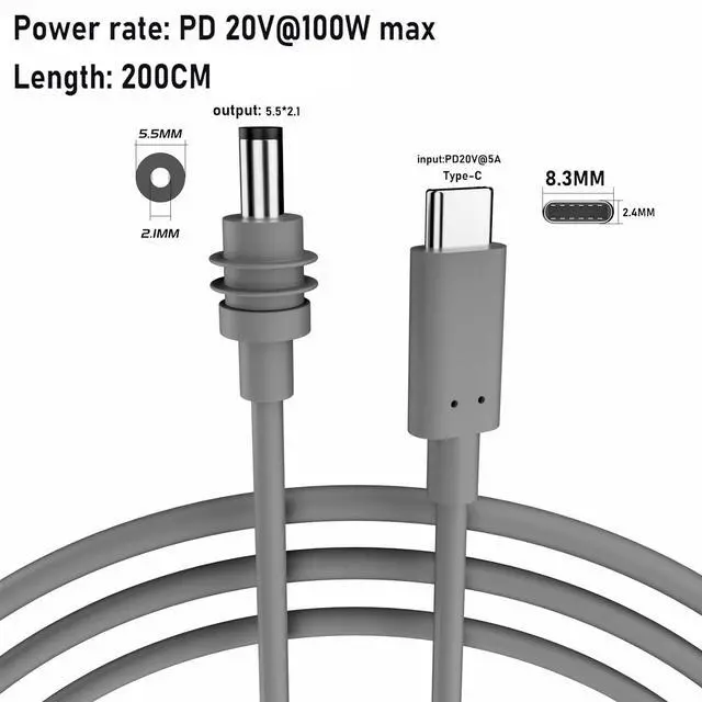 Mini Cable for Starlink USB C to DC Power Cable Compatible with 100W+ Power Bank and PD Charger ( 6.56FT /2M)