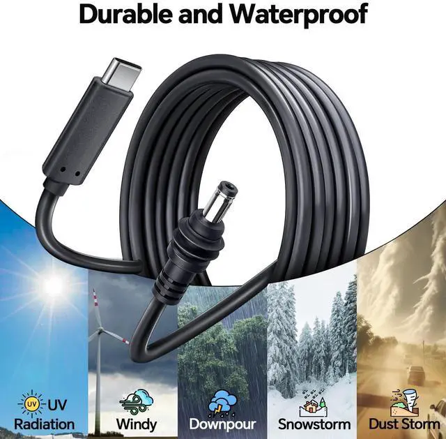 Durable and Weatherproof Design: This mini power extension cord features a robust construction with a USB-C male connector and a barrel jack male connector with a proprietary waterproof gasket. This design ensures reliable performance in both indoor and outdoor environments, enabling efficient power transmission, extending the cable's service life, and withstanding frequent outdoor use