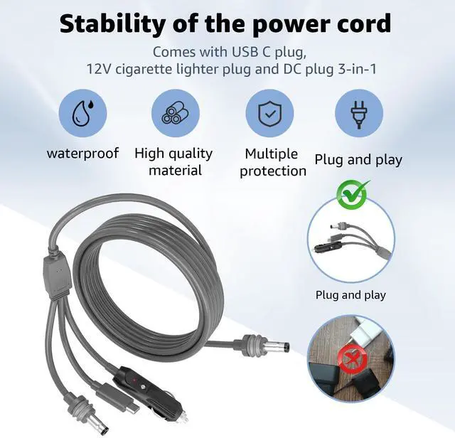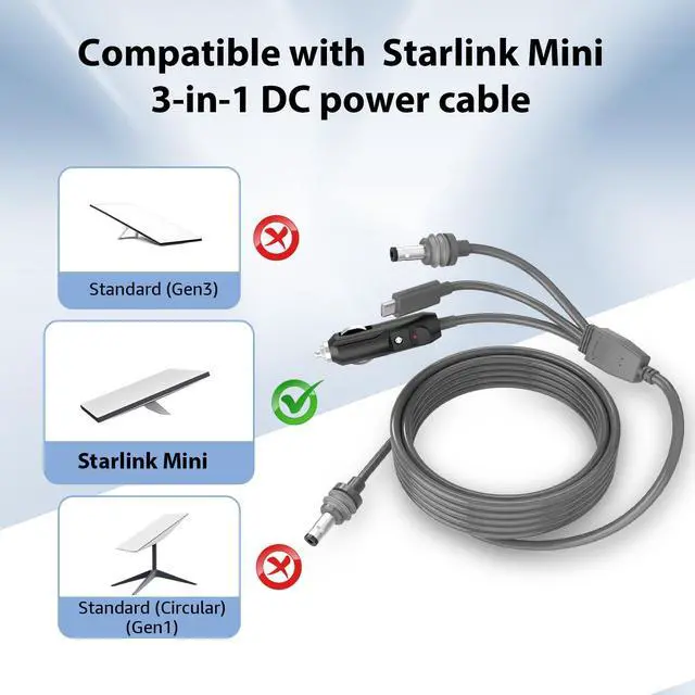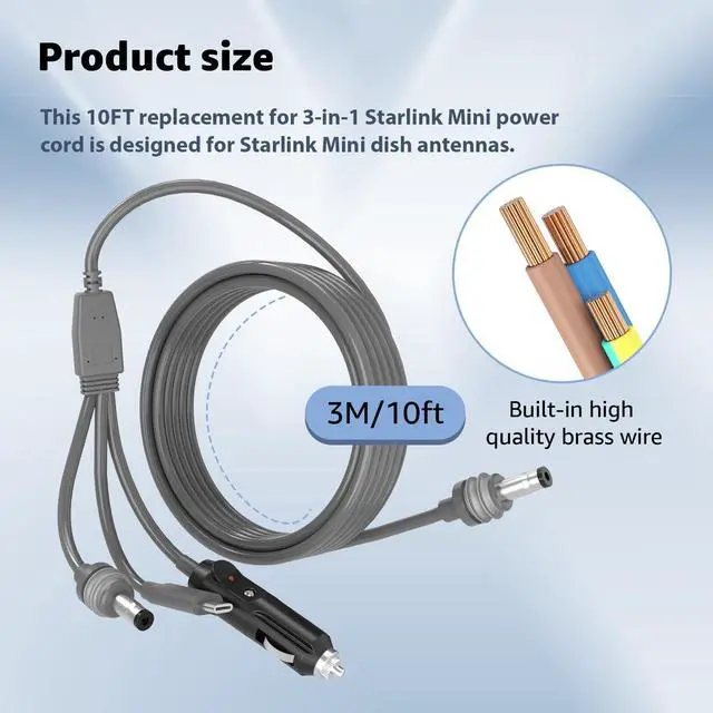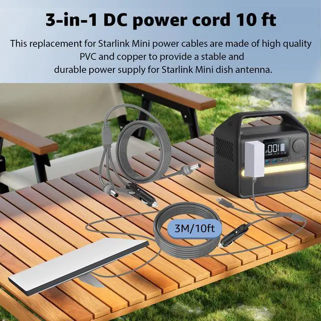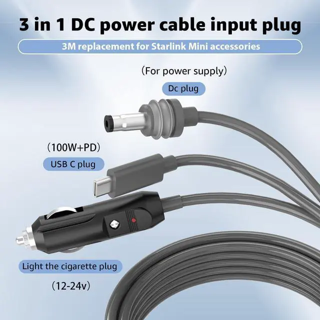 Our replacement for Starlink Mini Cable triples your connectivity options with USB C,Cigarette Lighter Plug,and DC to DC ports(3 in 1),tailored to meet every conceivable need.