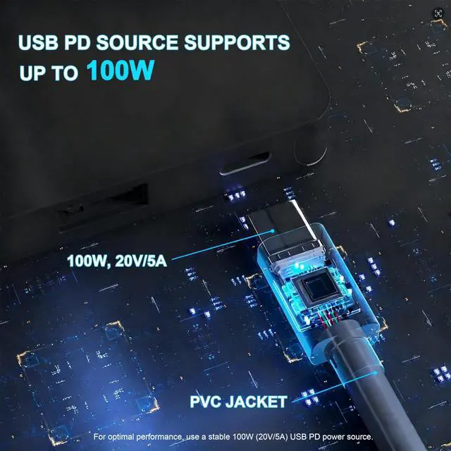 100W PD Starlink Mini Charger: The USB-C to DC power cable supports a maximum power output of 100W (20V 5A). This cable requires use with a PD power adapter or PD power supply supporting at least 65W of power.Starlink Mini requires a minimum voltage of 12.8V for normal operation. If the voltage drops below 12.8V, the device will continuously reboot due to insufficient power supply. Please start the vehicle engine to ensure Starlink Mini receives sufficient power for a stable network connection