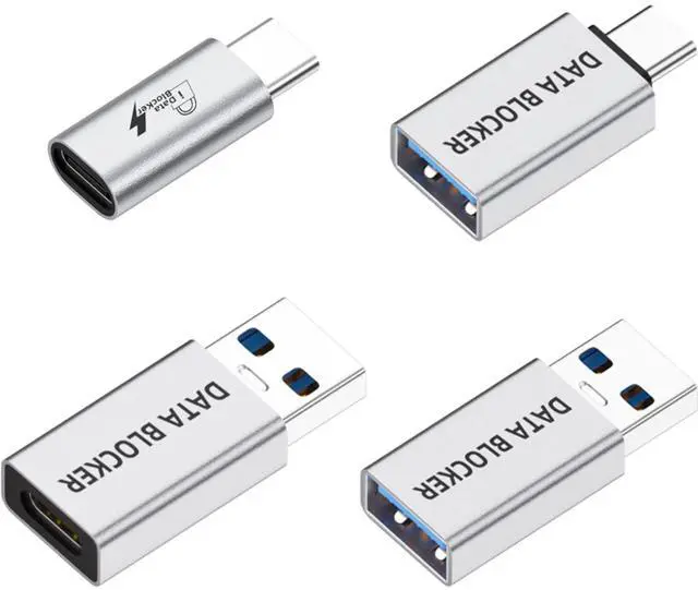 USB Data Blocker is an essential security tool that allows you to charge your mobile devices safely at public charging stations, preventing data leakage and blocking any unauthorized data transfer or syncing. This compact and portable usb c data blocker supports fast charging technology,, compatible with a variety of power outputs. Available in a pack of four, including one USB A to A and one USB A to C and USB C to A and USB C to C data blockers, it is suitable for a range of devices from iPhones to Mac-Books. Its transparent case design adds a stylish visual appeal, making it perfect for on-the-go use, ensuring your devices are charged without risk wherever you are.