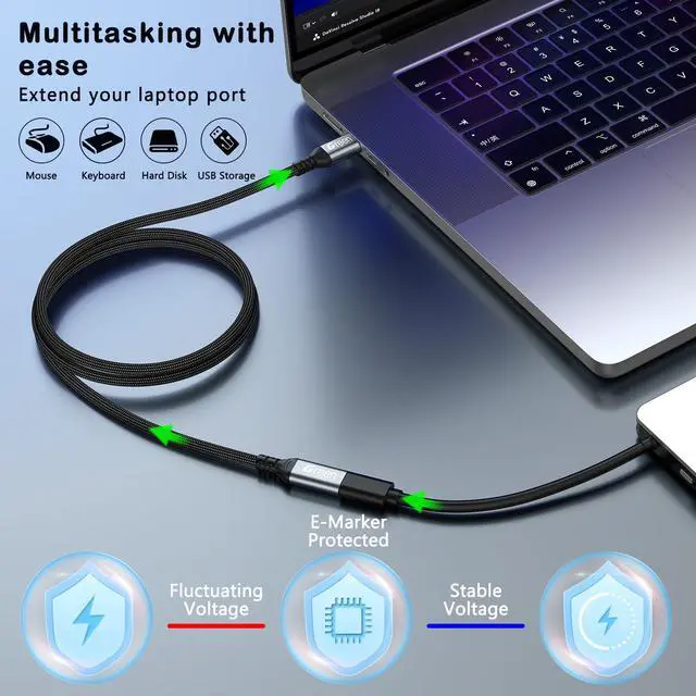 | Compatible Devices | USB type C extension cable is compatible with PSVR 2 USB C hub, iPhone 17/16 /15, Pixel 9 /8 /7/6a/6/5/4/3/2/XL, Galaxy Tab S8/ S8+/ S8 Ultra, Galaxy S22/22+/22 Ultra, Switch, iPad, Surface Go, iMac Pro, MacBook Mini, MacBook Pro 2020 2021, Google Chromebook Pixel, Dell XPS 13/ 15, Mag-safe Wireless Charger and more USB C peripherals devices., Laptop, Monitor, Tablet, Docking Station, Cellular Phones |