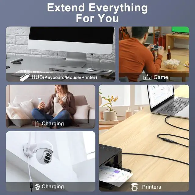 The USB cable capable of extending up to 6ft, effectively solving the problem of short cables that add extra length to your devices and protecting the USB sockets of your devices from frequent plugging and unplugging