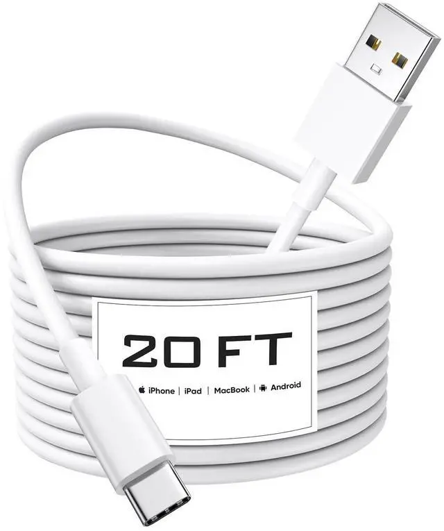 Extra Length for Convenience: This 20ft USB C cable lets you charge anywherewhether on the couch or in bed. No more being tied to the wall!