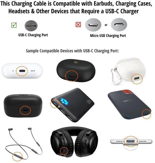 This 9-inch USB C to USB C (USB Type C to USB Type C) data & charge cable, cord or wire is used for charging newly released earphones & headphones. This easily fits in small pockets, bags or cases. This is compatible with New Beats Flex, Samsung Galaxy Buds, Bose, Boltune, Anker, Sony, Jabra Elite 75t 85h, B&W, Sennheiser HD 450BT 350BT Momentum 3, Mpow M12, TOZO and more. This pocket-size 9-inch short USB C Male to USB C Male is ideal for charging your new smartphones & tablets with a USB C charging port using a portable power bank. This is compatible with Samsung, LG, Google Pixel, OnePlus, Motorola Moto & other smartphone or tablets with a USB Type charging port. This 9-inch short USB-C Male to USB-C Male can be used to charge newly release powerbanks, power banks or rechargeable battery packs. This is compatible with Spigen PocketBoost, INIU, T-CORE, Anker USB-C, Anker PowerCore, BONAI, Aukey, Miady, Samsung, BSYYO and other portable Powerbanks with a USB C Type C input charging port. ienza guarantee: We understand that finding the correct cable for your electronic device is confusing. If this cable is not compatible with your device or if you purchased this in error, contact ienza and we will send you the cable that works with your device.