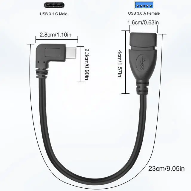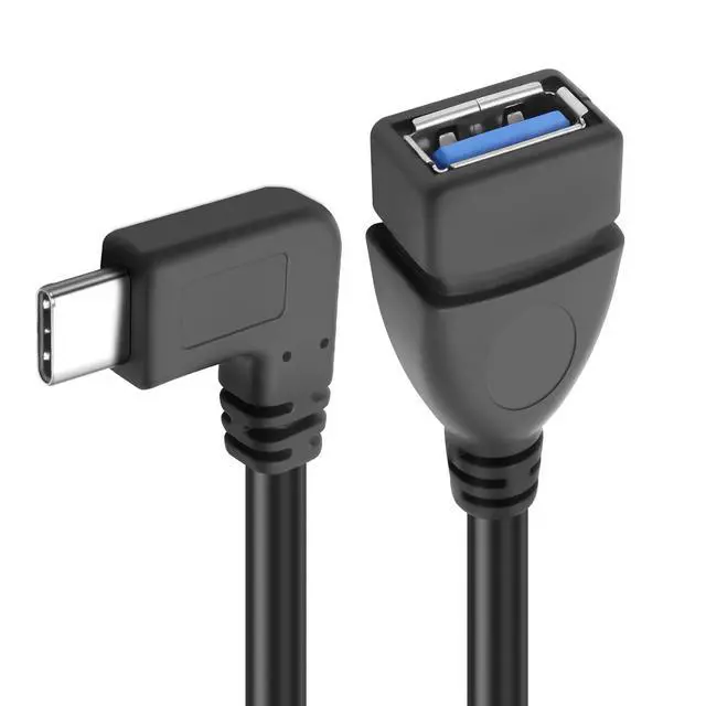 90 Degree USB C Male to USB A Female OTG Cable no additional driver/software required, Plug and Play; the durable PVC braided cable ensures stable transmission and allows you to use your phone more conveniently, Compact and lightweight, perfect for traveling.