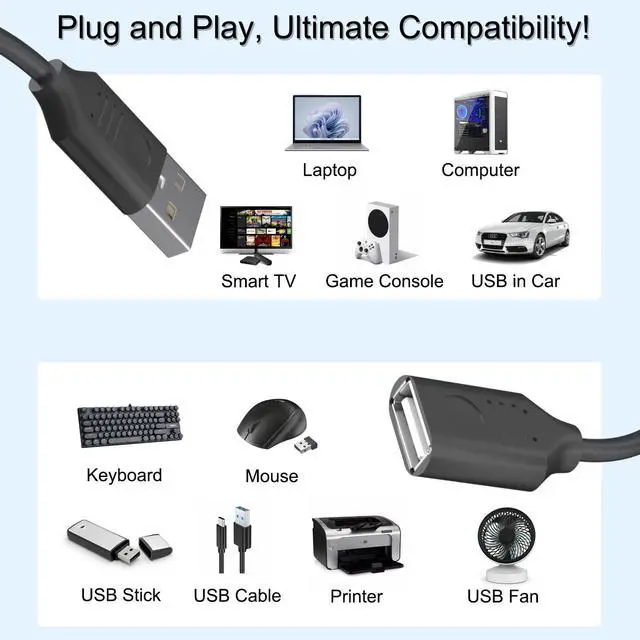 The USB ON/OFF cord is compatible with a wide variety of USB device, such as keyboard, mouse, flash drive, game controller, LED light, fan, smartphone, tablet, power bank, speaker, printer, scanner, microphone, smart home gadget, and more—perfect for home, office, or travel use.