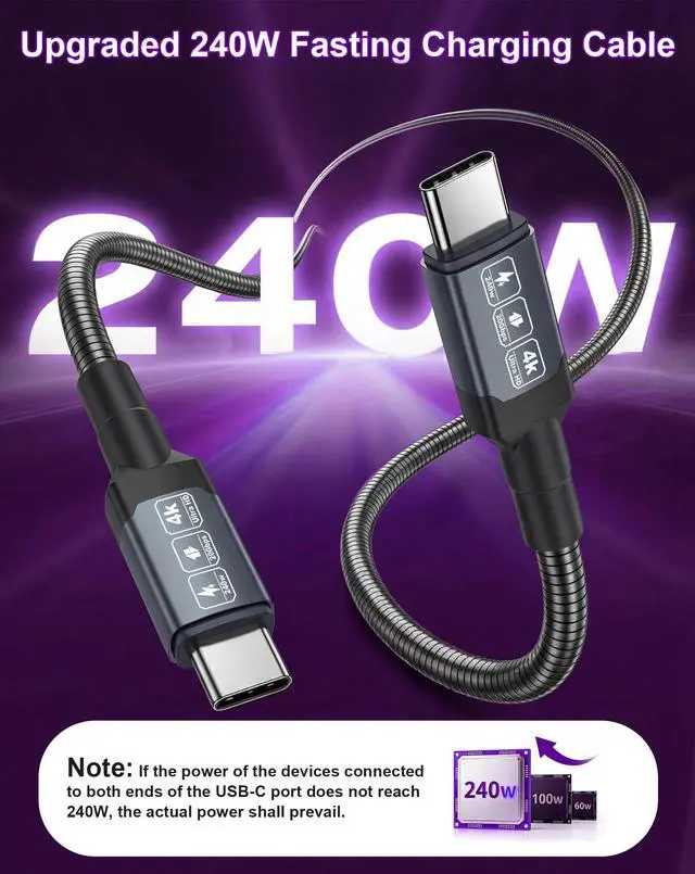 For 240W charging, please use a 240W PD charger (sold separately). The cable automatically adjusts to your device safe and efficient.