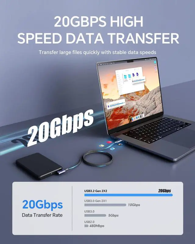 This USB-C to USB-C cable is designed for fast data transfer and stable performance in everyday and professional use. With USB 3.2 Gen 2x2 support, it delivers speeds up to 20Gbps, making it suitable for large file transfers and smooth 4K video preview during shooting. Built with a pure copper core and a smart chip, it helps maintain reliable data and power transmission for wired shooting and editing. The metal connectors and reinforced joints are designed for durability, while the included cable clip helps keep your setup organized. It also supports 4K Ultra HD screen mirroring, ideal for presentations, streaming, or extending your workspace. Compatible with a wide range of USB-C devices, including MacBook Pro/Air, USB-C SSDs, iPhone 15/16/17 series, and cameras like Canon EOS R series, and Nikon Z seriesa practical choice for shooting, transfer, and daily work.