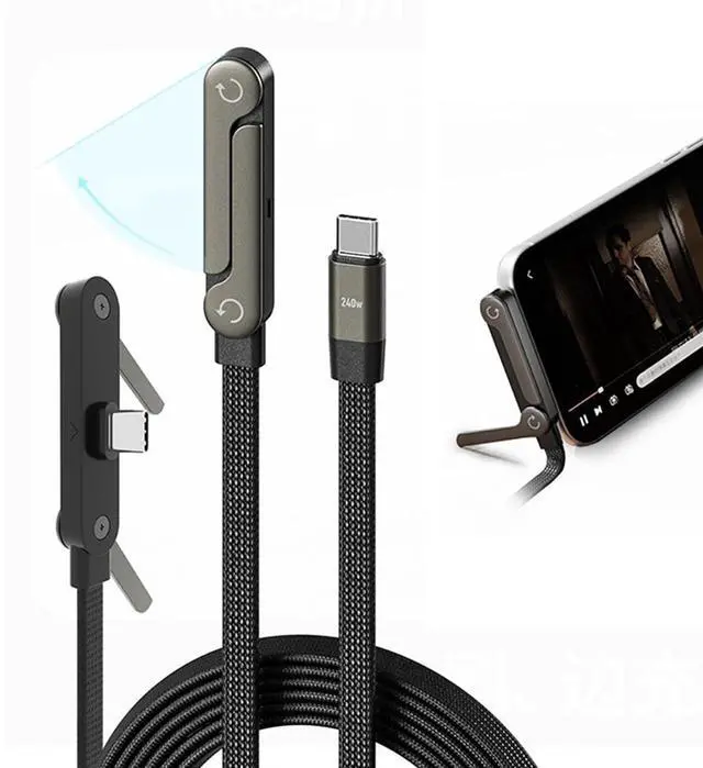 Sideways Phone Charger, 240W Fast Charging Cable, 2-in-1 Invisible Holder Charger Cable with Built-in Phone Stand for Smartphones Tablets (1Pc,C-C)