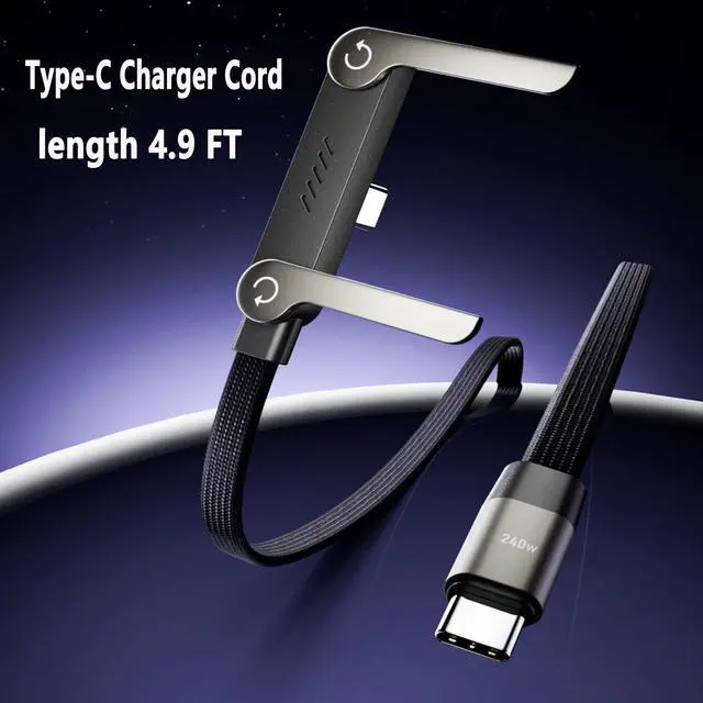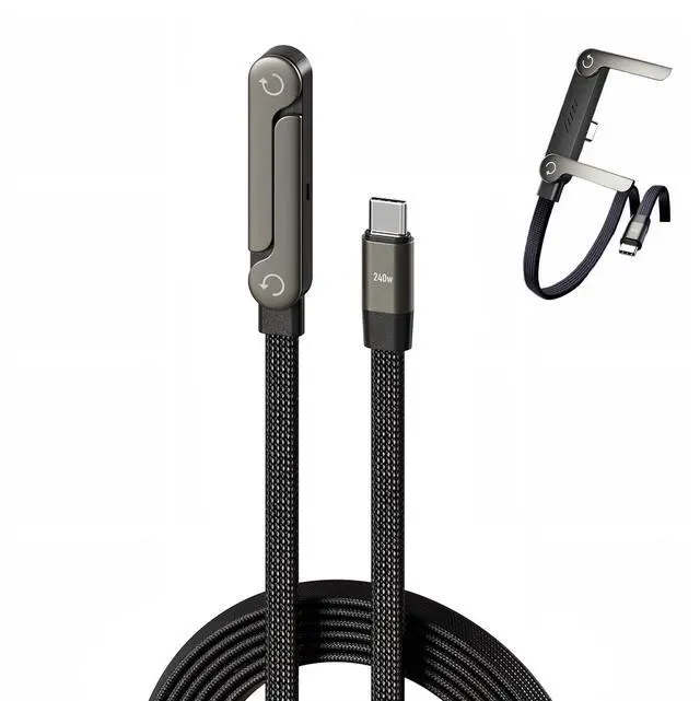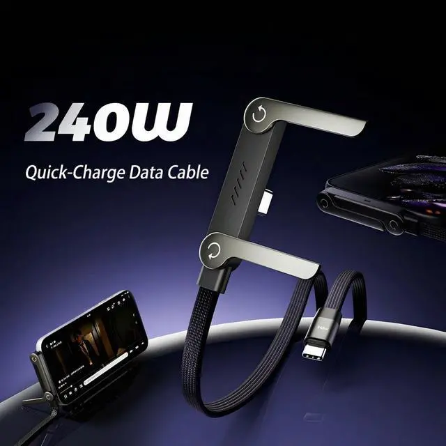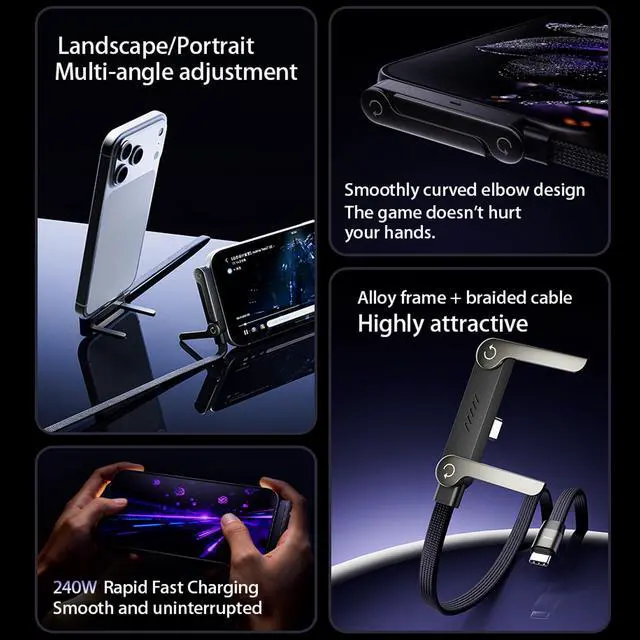 2-in-1 Invisible Stand USB-C Charging Cable Adjustable Multi-Angle Charger Cord (4.9 FT) with 240W Fast Charging for Smartphones, Tablets, Laptops, and Gaming Devices