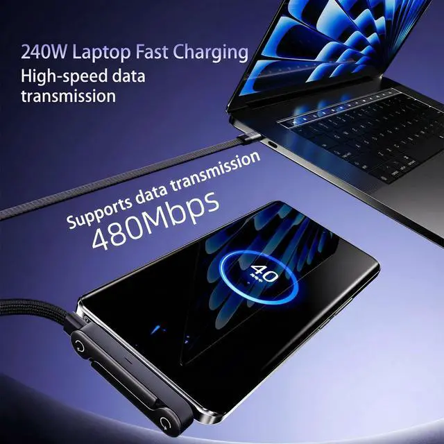 Get your devices charged in no time with the high-performance 240W USB-C charging cable. Whether you're powering up your smartphone, tablet, laptop, or gaming device, this cable ensures a super-fast and efficient charging experience. Say goodbye to long wait times and enjoy quicker, reliable power for your everyday devices.