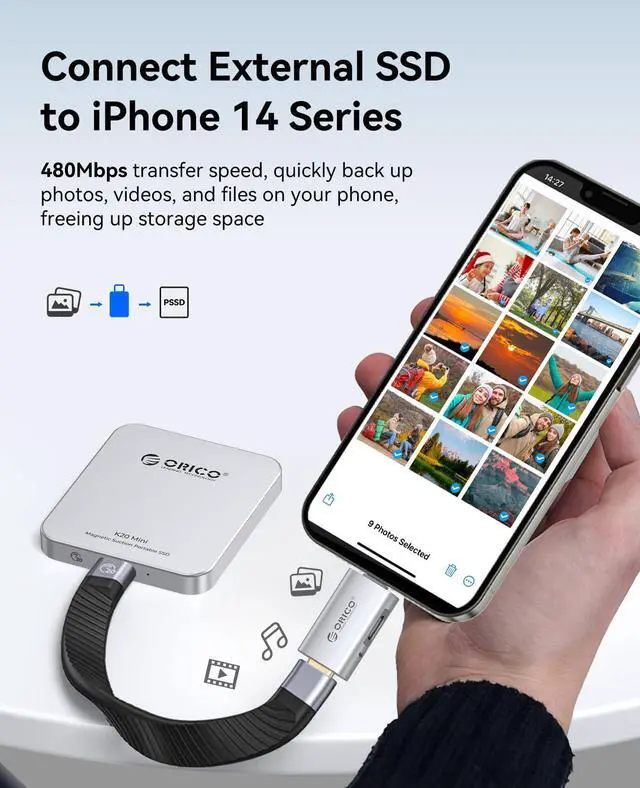 OTG Function: Plug in your external SSD and effortlessly back up photos, videos, and files from your phone, freeing up valuable storage space. Please note: The adapter not support connect USB C wired headphones to listen to music and watch movies