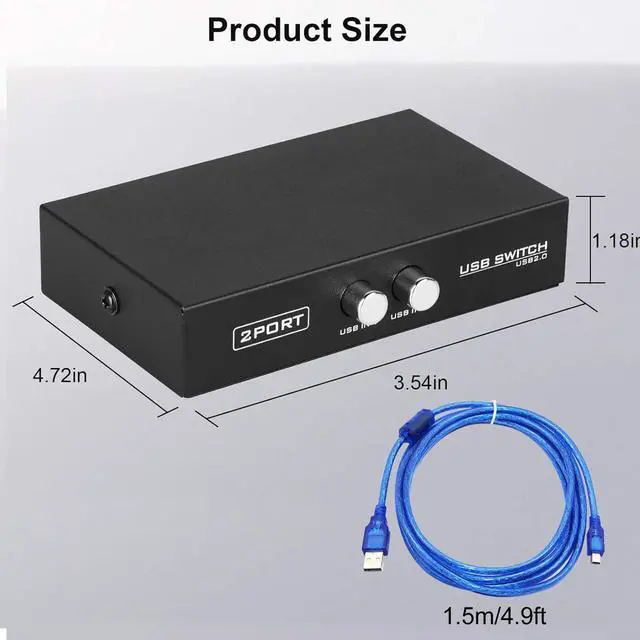 Package Includes:1 × 2 Port USB 2.0 Sharing Switch Box,2 × 5 Feet USB A to B Printer Cables
