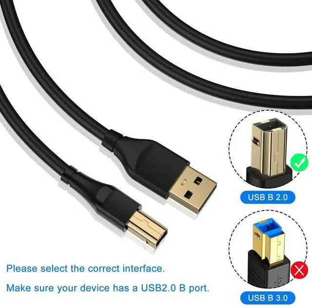 • USB 2.0 Canon Printer Cable Overview: 1.USB-A to USB-B 2.0 Port. 2.Durable: Features gold-plated connectors. 3.Widely Compatible: Works with various USB B printers and devices. 4.Plug and Play: Offers more stability than Wi-Fi . 5.Long Length: 10 Feet.