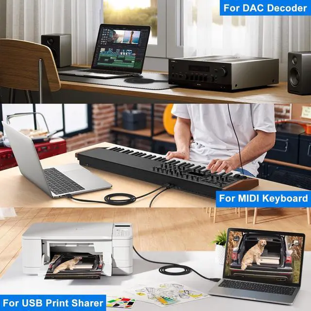 • Canon Pixma Printer Cable Universal Compatibility: The Canon printer cable is compatible with a wide range of devices, including printers, scanners, servers, hard drives, cameras, electronic pianos, MIDI keyboards, microphones, DAC decoders, and other peripherals that use a USB B port. It easily connects to laptops, computers, PCs, or other USB-enabled devices for data transfer.