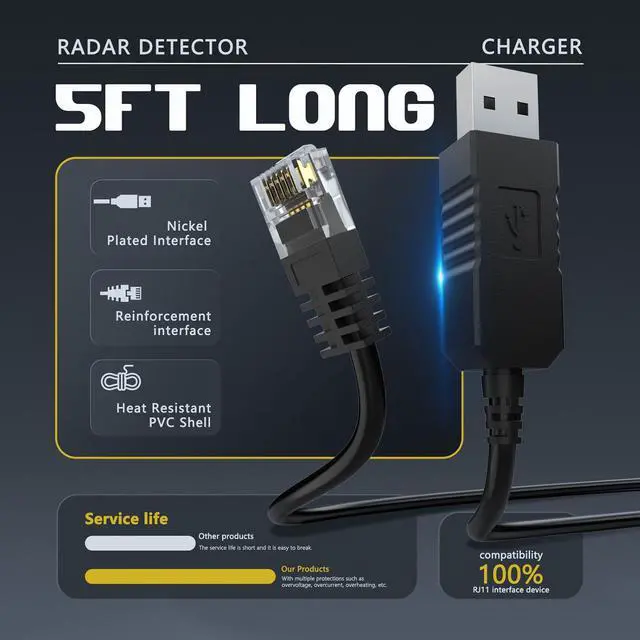 What's in the box: 1Pcs usb to rj11 radar detector cable